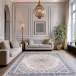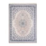 Create a warm, inviting look with the Sara Beige Rug. A soft beige field centres a finely detailed floral medallion, framed by an oval garland of vines and layered borders in grey and ivory with subtle blue highlights. The gentle palette adds definition without overpowering your room, so it pairs easily with both modern and classic décor.