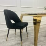Our Astra Leather Dining Chairs are a stunning addition to any dining area, featuring a curved open back in a beige PU leather fabric or in 4 colourways of Plush Velvet. The Astra also comes with Scandinavian style black legs that are capped with a subtle gold tip to give just that extra touch of luxury.