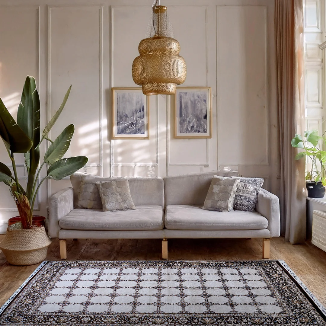 This colourway brings warmth and balance to both contemporary and classic interiors. The neutral base keeps the space feeling open and airy, while the darker border adds structure and contrast. Ideal for living rooms, offices or formal areas, this rug complements a wide range of interior palettes.