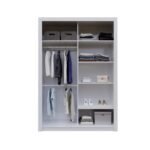 Introducing the Burket White 180cm Sliding Door Wardrobe – a harmonious blend of style and practicality to elevate your living space. With its sleek design and compact size, this wardrobe offers a seamless storage solution for those who seek both functionality and aesthetics. The crisp white finish adds a touch of elegance, effortlessly complementing a variety of interior themes. The sliding doors not only save space but also ensure easy access to your belongings. Inside, you’ll find a well-organized storage area, complete with hanging rails and shelves, allowing you to neatly arrange your clothing and accessories. Crafted with meticulous attention to detail, the Burket White 180cm Sliding Door Wardrobe is designed for durability while enhancing the ambiance of your room. Whether it’s a bedroom, guest room, or even a hallway, its versatile design fits seamlessly, adding a statement of sophistication to any corner. Elevate your storage experience with this wardrobe’s blend of functionality and refined style – a perfect addition for those who value both aesthetics and utility.