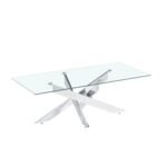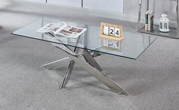 Buy Cannes Glass Coffee Table, it seems to be glass table top, its silver legs add unbeatable beauty to your living room. Made with high-quality material and built to last these tables are not only function but add glam to any room.