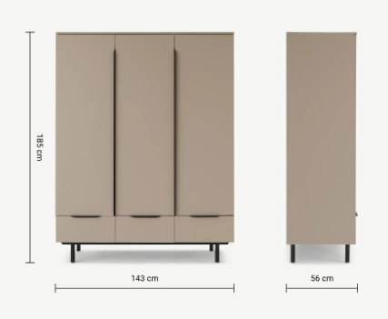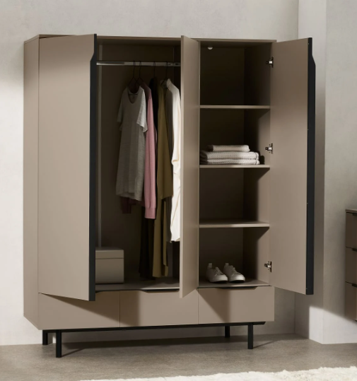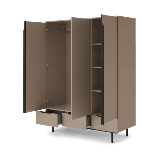 Introducing the Mocha/Black Triple Door Wardrobe – a true blend of elegance and functionality for your living space. With its contemporary design and dual-tone finish, this wardrobe adds a touch of sophistication to any room. Crafted to provide ample storage, it features three compartments equipped with hanging rails, shelves, and drawers. This means you can neatly organize your clothes, accessories, and more, without sacrificing style. The mocha brown and black color scheme complements various interior themes, while the sturdy construction ensures durability. Whether you have a spacious bedroom or a cozy corner, this wardrobe’s versatile design fits seamlessly. Stay organized effortlessly, store belongings just the way you want with customizable internal layouts. Plus, easy maintenance keeps it looking as good as new. Upgrade your space with the Mocha/Black Triple Door Wardrobe – where practicality meets aesthetic appeal.
